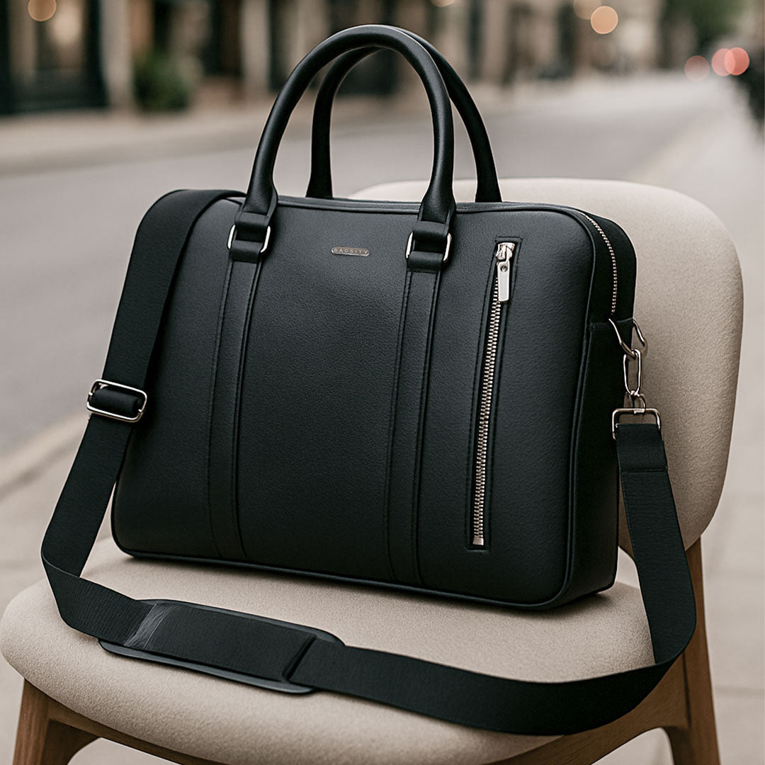 A sophisticated blend of premium leather craftsmanship and smart functionality, this sleek black office bag is designed to keep you organized and stylish wherever your day takes you